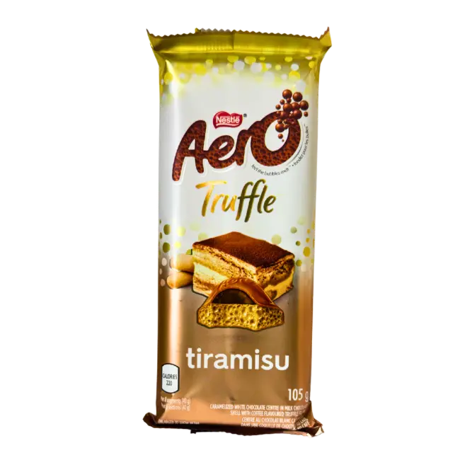 Experience a taste of Italy with Aero Truffle Tiramisu — a luxurious blend of chocolate and creamy tiramisu-inspired filling. The centre features a coffee-kissed truffle cream, softened by Aero’s airy, bubble-filled texture that melts effortlessly on the tongue. Wrapped in smooth chocolate, every bite captures the elegant flavours of mascarpone, cocoa, and espresso.