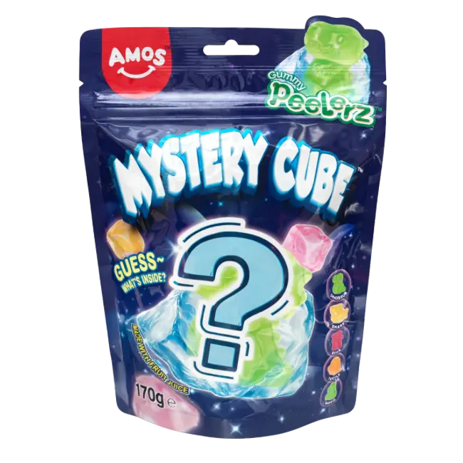 Amos Peelerz Mystery Cube (170g) takes the viral peelable sweet experience to the next level. Each cube-shaped gummy is designed to be peeled before eating – but the real fun is guessing what’s inside.