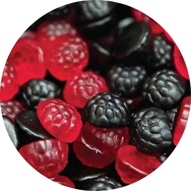 Our Black & Raspberries are a classic addition to any pick and mix sweets Ireland selection. These soft, berry-shaped jelly sweets combine the sweet taste of raspberry with the deeper, richer flavour of blackberry for the perfect fruity balance.