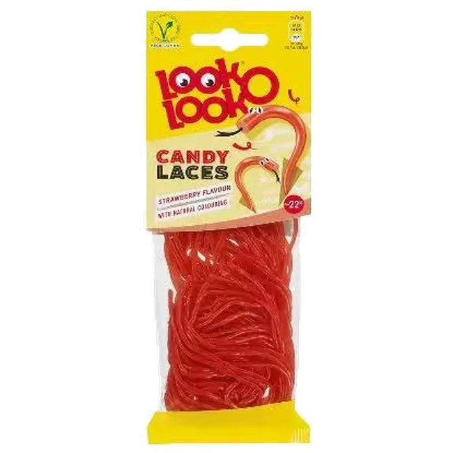 Look-O-Look Strawberry Candy Laces are classic soft candy strips with a chewy texture and a fresh strawberry flavor. Their long, thin lace shape looks fun and makes them enjoyable to eat. People love them as both a sweet treat and a playful snack.