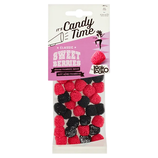 Look-O-Look Sweet Berries candy is a classic soft candy inspired by real berries. Each piece comes in red or black with a beaded surface that looks fun and attractive.