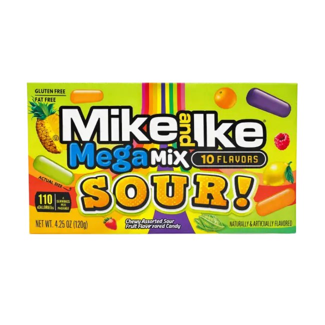 Mike and Ike Mega Mix Sour 10 Flavors 120g brings together TEN bold sour fruit flavours in one epic American candy box – now available at Candy World Ireland.