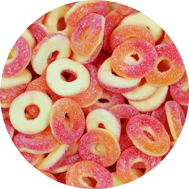 Bright, colourful and full of fruity goodness, peach gummy rings are one of the most popular choices in any pick and mix sweets selection in Ireland. Their soft texture and refreshing peach taste make them ideal for birthday parties, movie nights, wedding sweet tables, or simply treating yourself.
