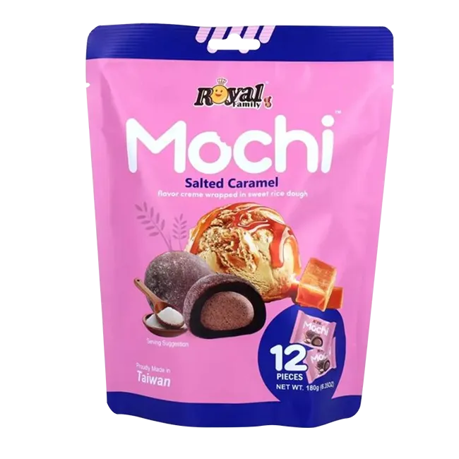 Royal Family Salted Caramel Mochi blends classic chewy rice dough with rich caramel cream filling. The soft outer layer pairs well with the smooth center.