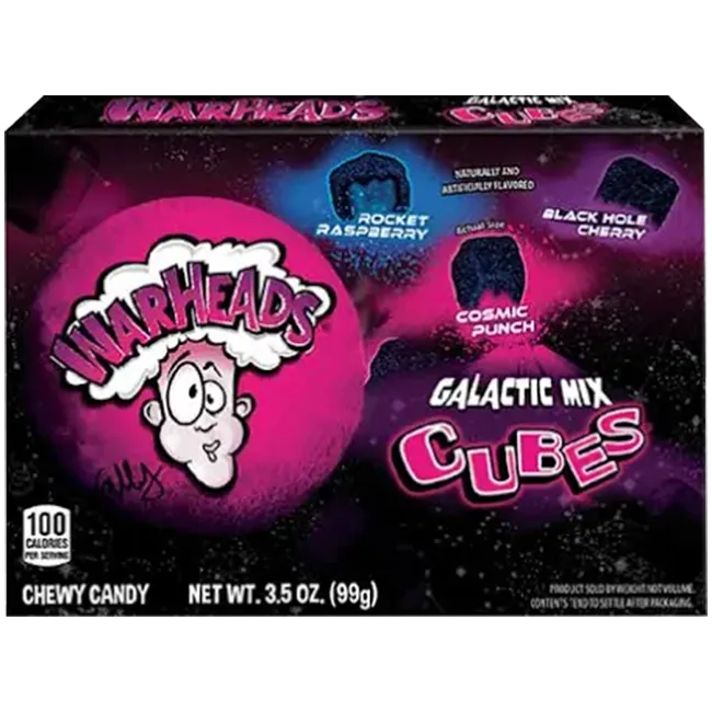 Warheads Galactic Mix Cubes Sour Chewy Candy is inspired by a space theme and made for sour candy lovers. It keeps the bold sour taste that Warheads is known for and blends it with deep fruit flavors.